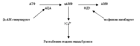 Существует 5 видов фосфодиэстеразы; в бронхах – ФДЭ1-3; теофиллин блокирует все виды ФДЭ. Также теофиллин является