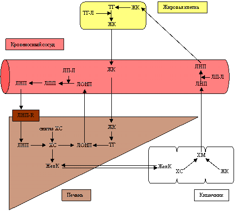 - повреждении интимы сосудов (апоB100-рецептор-зависимый эндоцитоз